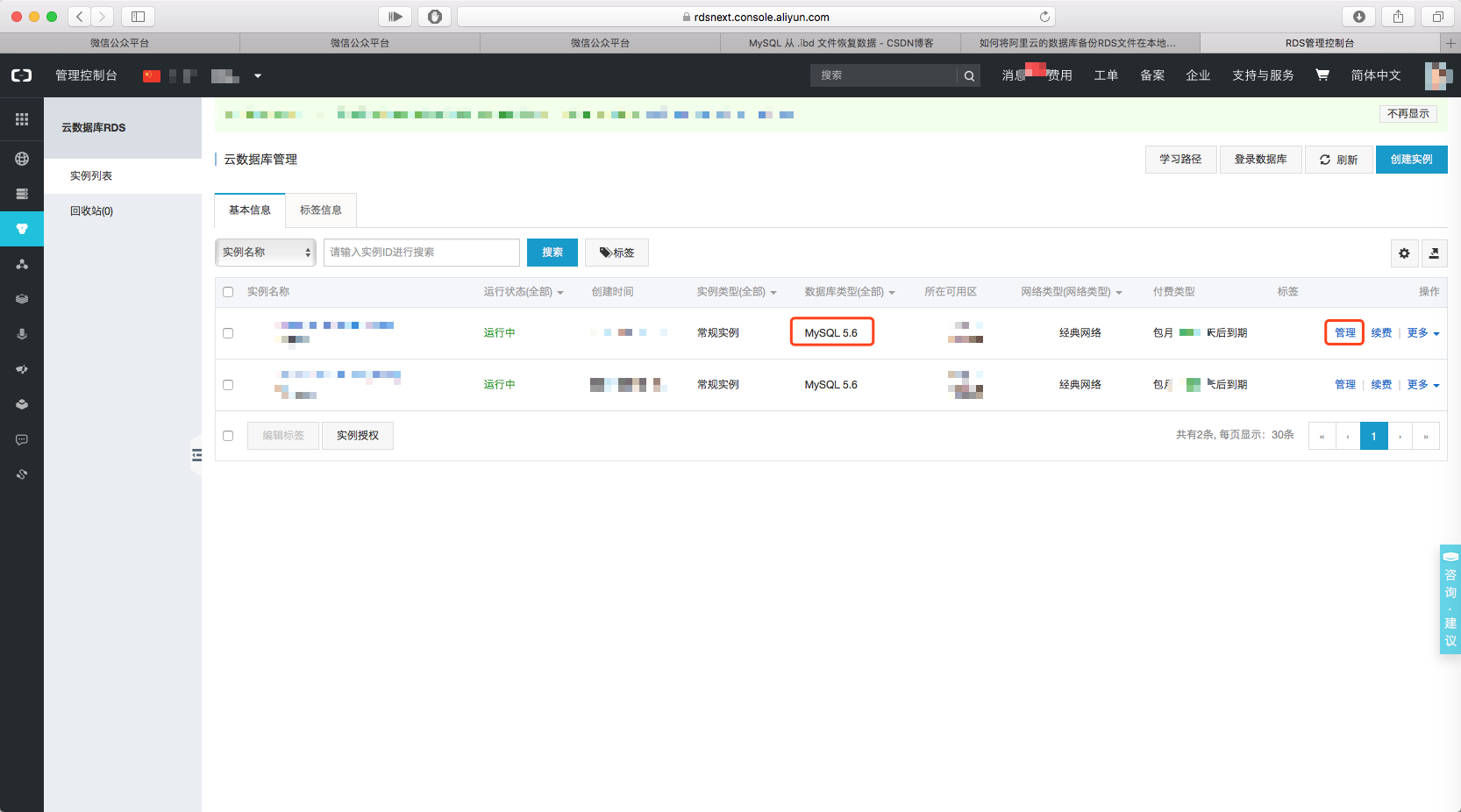 登录阿里云后台管理,进入RDS,如下图。