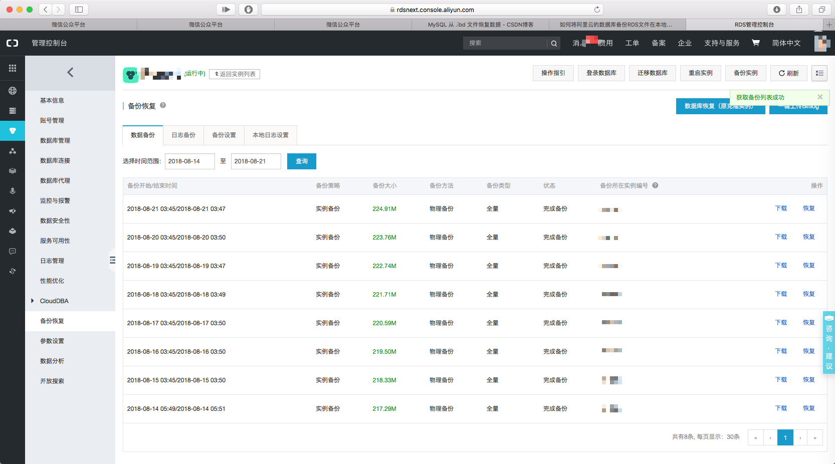 下载 RDS 备份文件